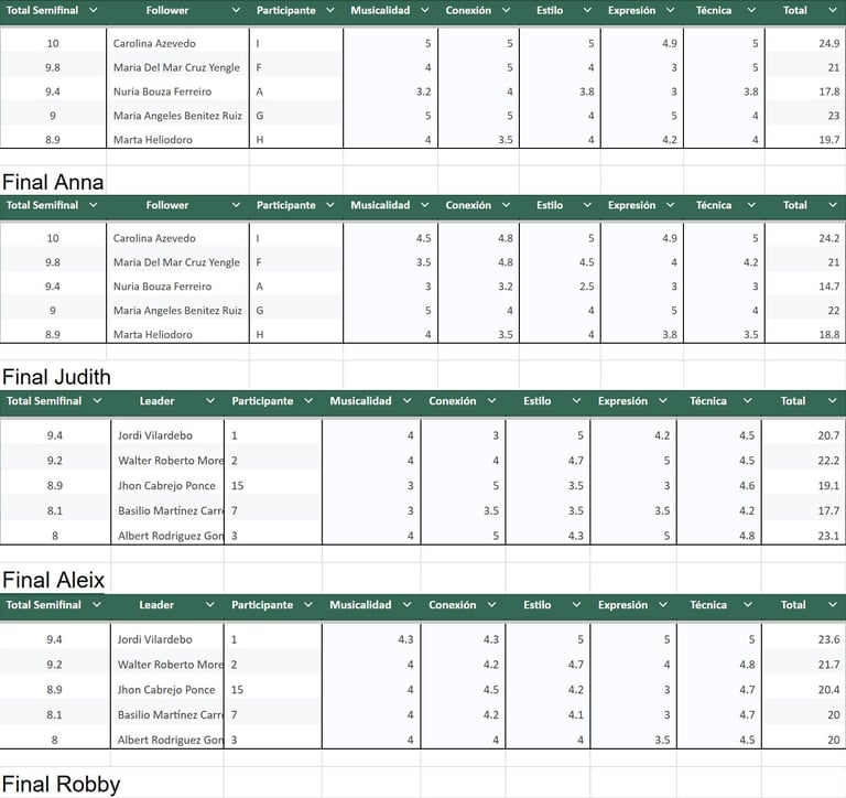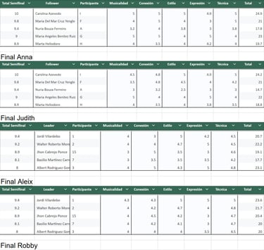 Explora puntuaciones oficiales, clasificaciones y momentos destacados de cada edición